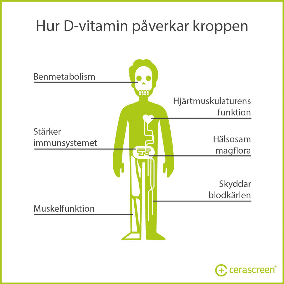 - D-vitamin stärker immunsystemet och minskar risken för infektioner.