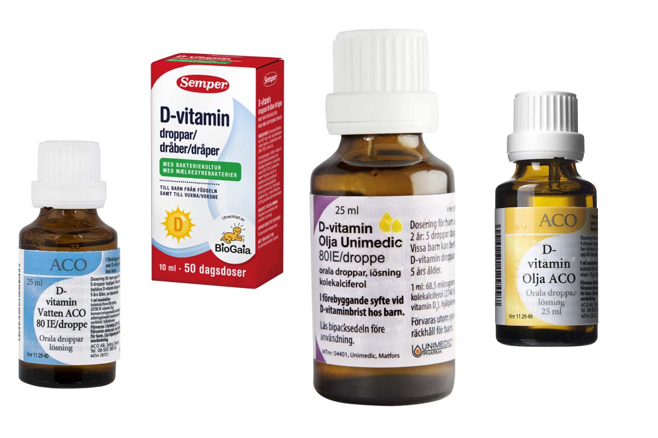 - Spädbarn under sex månader ska få 400 IE D-vitamin per dag.