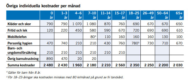 Kostnader för olika åldersgrupper