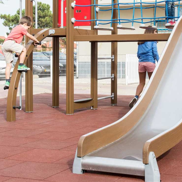 - Gummimattor eller gummiplattor under lekmöbler som rutschkanor och klätterväggar