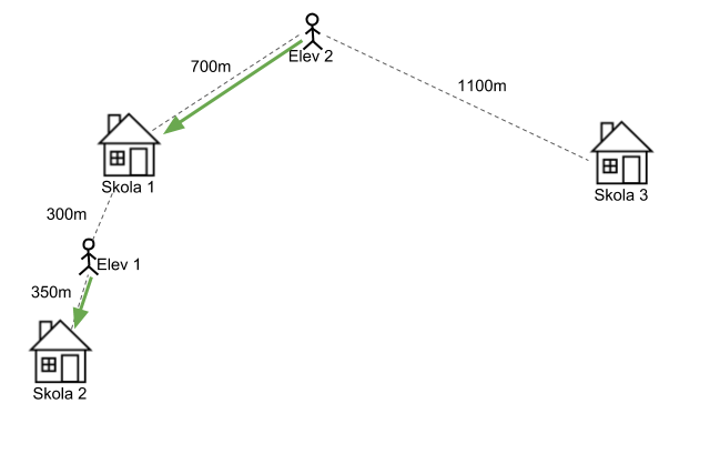 I detta exempel har syskonen Anna och Emma rätt att gå i samma skola, Skola A, eftersom de har samma adress och föräldrar. På samma sätt har syskonen Olle och Linnéa rätt att gå i samma förskola, Förskola B.